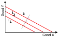 - Если предпочтения являются монотонными, то каждая следующая кривая безразличия, проходящая дальше от начала координат, отражает бо́льшую величину полезности, чем предыдущая.