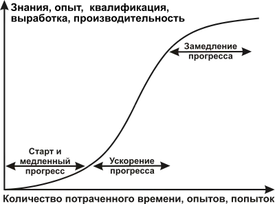 Кривая обучаемости также иллюстрирует изначальную сложность изучения чего-либо, а также то, насколько много предстоит освоить после начального ознакомления.