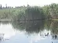 ![]() Вид на озеро с дамбы летом | |