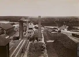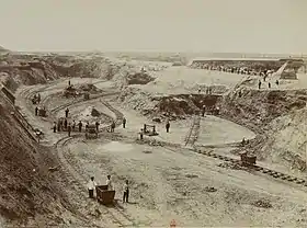 Владения английской компании «Новороссийское общество каменноугольного, железного и рельсового производства» основатель Джон Хьюз … Общество владеет в Кривом Роге около 1 500 дес. земли, с залежами железных руд, содержащих 58 % — 65 % железа. Добыча составляет в настоящее время 16 миллионов пуд. в год. … В недрах общества имеется запас руды около 1 ½ миллиарда пудов. …