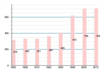 Население коммуны в 2011 году составляло 708 человек[6], в 2012 году — 705 человек[7], а в 2013-м — 706 человек[5].