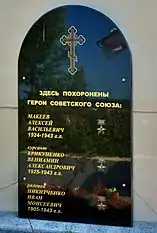 - На въезде в село Ясногородка Вышгородского района Киевской области на братской могиле, где похоронен Герой, установлен памятник и мемориальная доска.