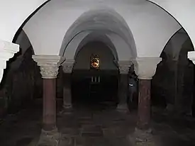 Кри́пта (от др.-греч. κρυπτή «крытый подземный ход; тайник») — в средневековой западноевропейской архитектуре одно или несколько подземных сводчатых помещений, расположенных под алтарной и хоральной частями храма и служащее для погребения и выставления для почитания мощей святых и мучеников. Другое название крипты — «нижняя церковь».