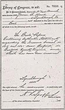 Оставшийся неизвестным автор брошюры, если верить его словам, получил коробку вместе со всем содержимым от самого Роберта Морриса в 1862 году, то есть сорок лет спустя после первого визита Бейла в Линчберг.