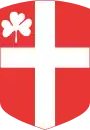 Район имеет свой герб: на красном щите серебряный (белый) крест, разделяющий его на четыре части. В верхней левой части изображён серебряный (белый) лист клевера[5].