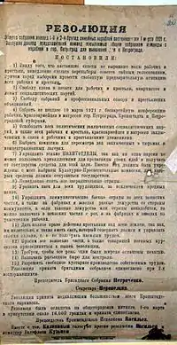 - Освободить всех политических заключенных социалистических партий, а также всех рабочих и крестьян, красноармейцев и матросов, заключенных в связи с рабочими и крестьянскими движениями.