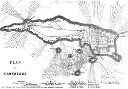 Задуманный в XVIII веке для прикрытия главного фарватера Финского залива, ведущего к устью Невы, Кронштадт и к 1920 году не утратил этой функции. Мощные укрепления, расположенные как на острове Котлин, так и в его окрестностях, были модернизированы с учётом последних на тот момент достижений военной науки. С берегов залива Кронштадт прикрывали орудийные батареи, а пространство между Котлином и побережьями было перекрыто линиями искусственных островов с фортами. В 1921 году Кронштадт был главной морской базой всего Балтийского флота, поэтому из 50 тысяч человек, населявших город, больше половины (около 27 тысяч[19]) составляли военные[20].