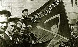 В июле 1917 года кронштадтские матросы сыграли ключевую роль в неудавшемся восстании, за что были названы Троцким «красой и гордостью» революции. Вновь они были призваны в Петроград в конце августа, во время выступления Корнилова. Особенно отличилась команда линейного корабля «Петропавловск». В октябре 1917 года матросы участвовали в штурме Зимнего дворца[25], а большевизация Совета на острове прошла быстрее, чем самого Петросовета столицы[26]. В ходе Гражданской войны в рядах РККА сражались более 40 тысяч матросов Балтийского флота. За время войны их не раз называли «вдохновителями революционной воинственности»[27].