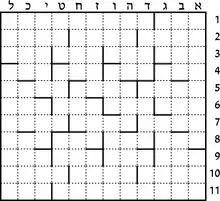 | Для привязки ответов к определениям в кроссворде последовательно нумеруются ячейки, содержащие первые буквы ответов. Нумерация идет по правилам чтения: слева направо и сверху вниз. Слова, идущие из одной клетки в разных направлениях, нумеруются одной цифрой. В списке определений уточняется направление каждого слова (чаще всего определения сгруппированы по направлениям). | Если направление чтения отличается от европейского, то и порядок нумерации кроссворда может меняться. Например, в Израиле — справа налево и сверху вниз, в Японии — сверху вниз и слева направо.