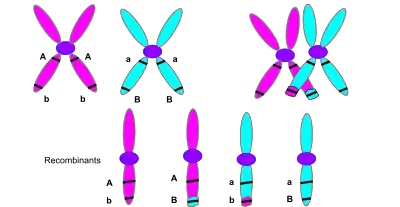 Ученик Моргана Альфред Стёртевант первым предположил использовать сведения о частоте кроссинговера между определёнными локусами для определения расстояния между ними на хромосоме и взаимного порядка расположения, то есть для картирования генов. В 1913 году он скрещивал мух, гомозиготных по локализованным на X-хромосоме мутациям yellow (жёлтое тело), white (белые глаза) и miniature (маленькие, недоразвитые крылья). Частота рекомбинации между локусами white и miniature, а также yellow и miniature была примерно одинаковой (34,5 % и 35,4 % соответственно), а вот между генами yellow и white рекомбинация происходила с частотой всего лишь 0,5 %. Стёртевант предположил, что, чем физически ближе локусы расположены на хромосоме, тем реже они рекомбинируют, поэтому эти гены, вероятнее всего, на хромосоме находятся в порядке yellow — white — miniature. На основании частот рекомбинаций Стёртевант построил генетическую карту X-хромосомы дрозофилы, причём одна условная единица карты соответствует 1 % рекомбинации. Единицу генетической карты в честь Моргана назвали сантиморганом (сМ). Дальнейшие исследования показали, что кроссинговер характерен не только для X-хромосомы, но и для аутосом. Любопытно, что у дрозофилы, в отличие от большинства других животных, кроссинговер не происходит у самцов[20].