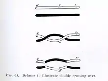 Между несестринскими хроматидами нередко происходит более одного кроссинговера, например, широко распространён так называемый двойной кроссинговер. Существование множественного кроссинговера нарушает точную аддитивность частоты рекомбинации между генами: из трёх линейно расположенных генов частота рекомбинации между крайними генами в действительности несколько ниже суммы частот рекомбинаций между первым и вторым геном и между вторым и третьим[21]. С увеличением расстояния между двумя генами хромосомная карта становится менее точной, потому что бесчисленные случаи кроссинговера между локусами, разделяющими эти гены, остаются неучтёнными. Из-за множественного кроссинговера частота рекомбинаций недооценивается, а определённое экспериментально межгенное расстояние меньше реального[22].