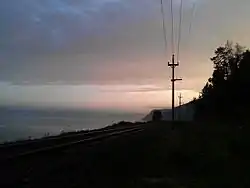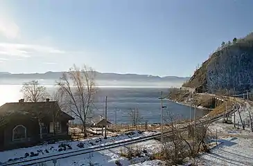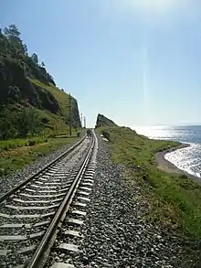 Проходящий по берегу озера Байкал вдоль подножия Олхинского плато участок КБЖД от города Слюдянки до посёлка Байкал является уникальным памятником инженерного искусства [7].