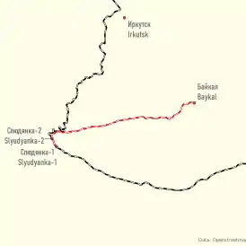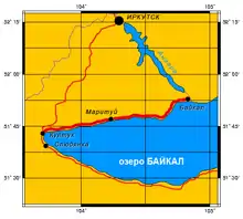 - 106 км — база института ядерных исследований (здесь под водой Байкала с 1993 года работает Байкальский подводный нейтринный телескоп NT-200+)[32];