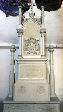 Полагание тел в Домском соборе Ревеля было запрещено с 1773 года, но для Адама Иоганна фон Крузенштерна было сделано исключение. По специальному разрешению императора было организовано строительство гробницы (напротив главного входа рядом со склепом адмирала Грейга), из-за чего погребение состоялось только 18 октября 1846 года. Гроб был обтянут чёрным бархатом с серебряными галунами, была помещена надпись с евангельской цитатой Мф. 5:8: «Блаженны чистые сердцем, ибо они Бога узрят»[155], и возложены адмиральская шляпа и шпага. На Ратушной площади было выстроено две тысячи военных моряков. За день до похорон дочь Шарлотта Крузенштерн (1818—1881) вышла замуж за Теодора Бернгарди, с которым была обручена уже давно и должна была выйти замуж 19 августа, но торжество сорвалось из-за болезни отца. Вдова — Юлия Крузенштерн — скончалась от удара 2 марта 1849 года в своём имении и была погребена в Домском соборе рядом с мужем. После её кончины (или, по другой версии, в 1848 году) было установлено неоготическое надгробие, созданное ревельским каменотёсом Экснером[156][157].