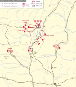 Маневрируя войском в поисках прохода через Балканы, он остановился около места, называемого Вырбишском проходом 25 июля 811 года. Проход болгары успели быстро перегородить рвом и деревянной стеной. Армии пришлось разбиться на отдельные отряды, так как местность не позволяла полного сосредоточения войска. Оценив реальное положение дел, император Никифор предвидел: