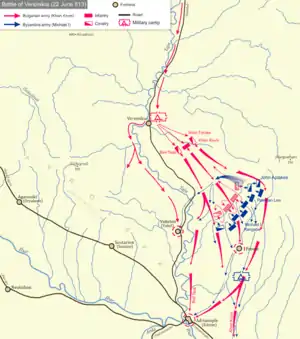 В 813 году Крум вновь подошёл к Константинополю. Основной преградой перед Константинополем являлась крепость Версиникея, где император Михаил I Рангаве сосредоточил остатки своей армии: