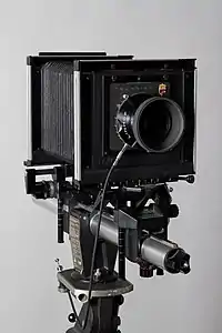 Крупноформа́тная ка́мера — фотоаппарат с размером кадрового окна 8×10 сантиметров и более[1][2]. Большинство крупноформатных фотоаппаратов являются камерами прямого визирования. Часть студийных камер этого типа называются карданными или монорельсовыми из-за конструкции, допускающей взаимные подвижки объектива и кассетной части (негативной доски) в широких пределах. В карданных камерах обе части крепятся к несущей штанге при помощи шарниров, позволяющих им смещаться поперёк оптической оси и отклоняться во всех направлениях. Остальные крупноформатные фотоаппараты имеют ограниченные возможности отклонения и смещения: как правило, объективная доска может смещаться по вертикали и горизонтали, а негативная обладает функцией уклона по этим же осям. Специализированные камеры для моментальной фотографии также относятся к крупноформатным, поскольку обладают минимальным размером кадра 8,5×11 см.