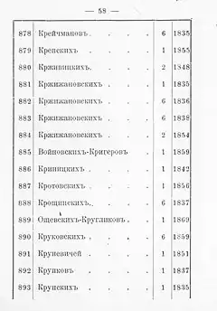 - Алфавитный список дворянским родам, внесённым в дворянскую родословную книгу Витебской губернии [с 1785] по 1900 г.", г. Витебск, 1900 г. (РГИА ф. 1343 оп. 23 д. 9444)