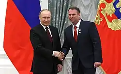 - Звание «Герой Российской Федерации» с удостаиванием медали «Золотая звезда» (12 апреля 2021 года, закрытым указом президента Российской Федерации) — за мужество, героизм и высокий профессионализм, проявленные при испытании и освоении новой авиационной техники[4][1]. Вручена президентом Российской Федерации В. В. Путиным 2 февраля 2022 года на церемонии в Екатерининском зале Московского кремля[17].