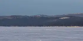 ![]() Вид на гору Крутой Ключ (в центре, на горизонте) с озера Тургояк зимой | |