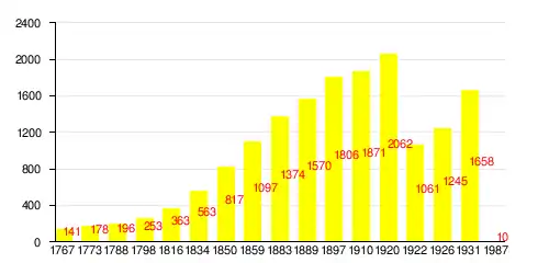 | 1767 | 1773 | 1788 | 1798 | 1816 | 1834 | 1850 | 1859 | 1883 | 1889 | 1897 | 1910 | 1920 | 1922 | 1926 | 1931 | 1987[5] |