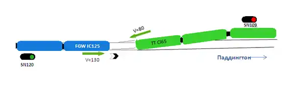 Станция Паддингтон имеет очень сложное путевое развитие. В 3,2 км от Паддингтона находился стрелочный перевод, оборудованный маршрутными светофорами SN109 и SN120. В этом месте к главному пути, по которому двигался скоростной InterCity 125, примыкал боковой, по которому во встречном направлении шёл пригородный. Отдельные пути для скоростного движения не были предусмотрены. Стрелка была переведена вдоль главного пути. На I-образном светофоре SN120, который находился по пути следования скоростного поезда, горел зелёный. Следовавший по примыкающему пути пригородный поезд должен был остановиться перед стрелкой и пропустить IC125, поскольку на L-образном светофоре SN109 по пути следования Class 165 у стрелки Портобелло горел красный сигнал. Перед SN109 на пути Class 165 находился светофор SN87, на котором горел жёлтый сигнал, означавший «поезд может продолжать движение, но нужно быть готовым остановиться у следующего сигнала».