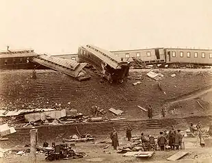 Авария Императорского поезда произошла 17 октября 1888 года в 14 часов 14 минут на 295-м километре линии Курск — Харьков — Азов южнее Харькова. Царская семья ехала из Крыма в Санкт-Петербург. Техническое состояние вагонов было отличным, они проработали 10 лет без аварий. В нарушение железнодорожных правил того периода, ограничивавших число осей в пассажирском поезде до 42, в императорском, состоявшем из 15 вагонов, было 64 оси. Вес поезда был в пределах, установленных для грузового, но скорость движения соответствовала экспрессу. В нарушение правил поезд вели два паровоза, товарный Т.164 завода Зигля (0-3-0, 1875 г. в., 38 т, конструкционная скорость 58 км/ч) и пассажирский П.41 Коломенского завода братьев Струве (1-2-0, 1871 г. в., 32 т, конструкционная скорость 82 км/ч)[3][4][5].