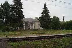 ![]() Здание станции Ельниково. Справа виден памятный знак, установленный после крушения. | |