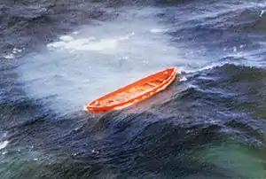 - 02:00 — шторм, скорость ветра 25 м/с; на воде 22 спасательных плота и 3 шлюпки[11]. Спасающимся людям не хватает места на плотах, многим не достаёт сил забраться на плот из воды, других смывает с плотов в море;