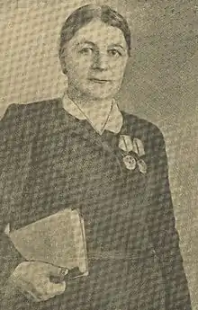 Была награждена знаком «Отличник народного просвещения» (1944), орденом Ленина и двумя орденами Трудового Красного Знамени, а также медалью «За доблестный труд в Великой Отечественной войне 1941-45 гг.».
