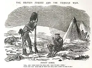 В самой Англии значительная часть общества не понимала смысла Крымской войны, и после первых серьёзных военных потерь в стране и в парламенте возникла сильная антивоенная оппозиция. Позднее английский историк Д. Тревельян писал, что Крымская война «являлась просто глупой экспедицией в Чёрное море, предпринятой без достаточных оснований, потому что английскому народу наскучил мир… Буржуазная демократия, возбуждённая своими излюбленными газетами, подстрекалась к крестовому походу ради турецкого господства над балканскими христианами…»[42] Такое же непонимание целей войны со стороны Великобритании высказывает современный английский историк Д. Ливен, который утверждает что «Крымская война, в первую очередь, была французской войной»[43].