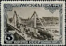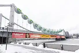 Кры́мский мост — висячий мост через Москву-реку, расположен на трассе Садового кольца, соединяет Зубовский бульвар с улицей Крымский Вал. Построен в 1938 году в рамках Генерального плана реконструкции Москвы 1935 года по проекту архитектора Александра Власова и инженера Бориса Петровича Константинова[3][4][5]. Существует несколько версий происхождения названия моста: по соединяемым им Крымской площади и улице Крымский Вал; по названию древнего Крымского брода; по находившемуся в XVI веке неподалёку от него двору крымского хана[4][1][6]. В 2007 году Правительство Москвы включило мост в реестр охраняемых объектов культурного наследия столицы[6][7][8]. В 2022 году на мосту появилась инсталляция в виде зубов с брекетами[9].