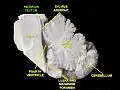 ![]() Глубокий разрез ствола головного мозга человека. Вид сбоку (латеральный вид). | |