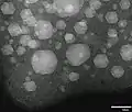 Жидкие (нехарактерные) и кристаллические твёрдые наночастицы Xe, полученные имплантацией ионов Xe+ в алюминий при комнатной температуре.