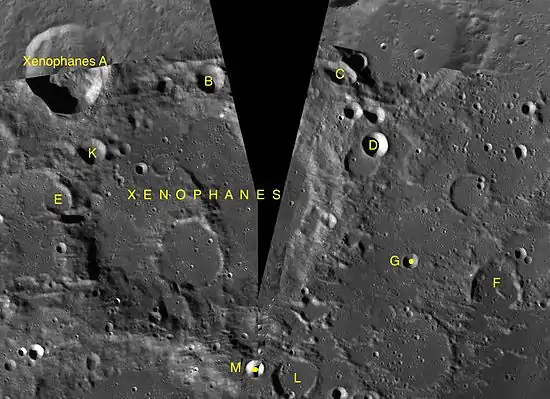 - Образование сателлитного кратера Ксенофан A относится к позднеимбрийскому периоду[1].