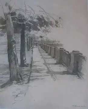 Фонтанка у Михайловского замка. 1910-е. Бумага, графитный карандаш. Ярославский художественный музей