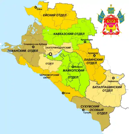 Исторически входило не в Кубанскую область, а в Черноморскую губернию. Нынче 7 РКО. Штаб — г. Новороссийск