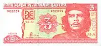 В 1983 году была введена банкнота в 3 песо, на лицевой стороне которой был изображён Че Гевара. С тех пор он изображается на всех банкнотах и монетах этого номинала.