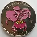Реверс кубинской медно-никелевой монеты 2001 года, розовая орхидея из серии «Флора Кубы»