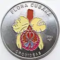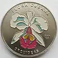 Реверс кубинской медно-никелевой монеты 2001 года, жёлтая орхидея из серии «Флора Кубы»