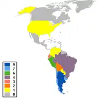 По количеству титулов впереди Уругвай и Аргентина — по 15 побед. У Бразилии — 9 побед. Остальные страны добивались побед не часто. Перуанцы выиграли чемпионаты в 1939 и 1975 годах, Парагвай побеждал в 1953 и 1979 годах, Чили в 2015 и 2016 годах, а Боливия и Колумбия добились единственных побед, каждая на своей родной земле, соответственно в 1963 и 2001 году.