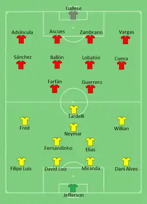 - Guerrero gets MasterCard Man of the Match award after Peru win (недоступная ссылка). Copa América Chile 2015 (18 июня 2015). Дата обращения: 20 июня 2015. Архивировано 19 июня 2015 года.