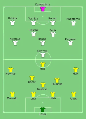 - Tactical Line-up – Group A – Brazil-Japan. ФИФА (15 июня 2013). Дата обращения: 3 декабря 2017. Архивировано 16 июня 2013 года.