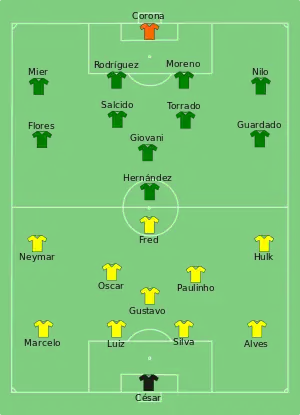- Tactical Line-up – Group A – Brazil-Mexico. ФИФА (19 июня 2013). Дата обращения: 3 декабря 2017. Архивировано 19 июня 2013 года.