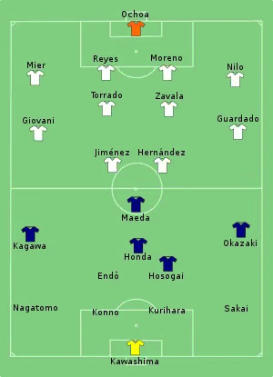 - Tactical Line-up – Group A – Japan-Mexico. ФИФА (22 июня 2013). Дата обращения: 3 декабря 2017. Архивировано 28 июня 2013 года.