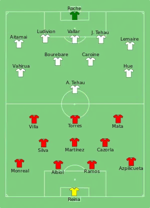 - Tactical Line-up – Group B – Spain-Tahiti. ФИФА (20 июня 2013). Дата обращения: 3 декабря 2017. Архивировано 28 июня 2013 года.