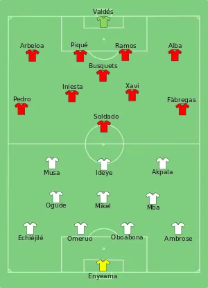 - Tactical Line-up – Group B – Nigeria-Spain. ФИФА (23 июня 2013). Дата обращения: 3 декабря 2017. Архивировано 28 июня 2013 года.