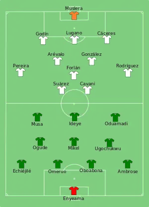- Tactical Line-up – Group B – Nigeria-Uruguay. ФИФА (20 июня 2013). Дата обращения: 3 декабря 2017. Архивировано 28 июня 2013 года.