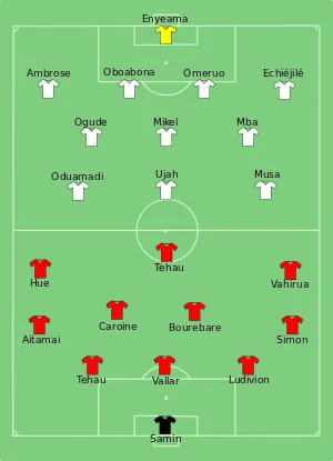- Tactical Line-up – Group A – Tahiti-Nigeria. ФИФА (17 июня 2013). Дата обращения: 3 декабря 2017. Архивировано 17 июня 2013 года.