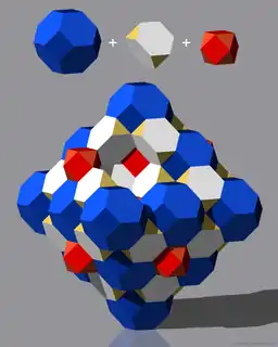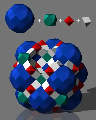 Одними только кубооктаэдрами замостить трёхмерное пространство без промежутков и наложений нельзя, но это можно сделать с помощью кубооктаэдров вместе с другими многогранниками: